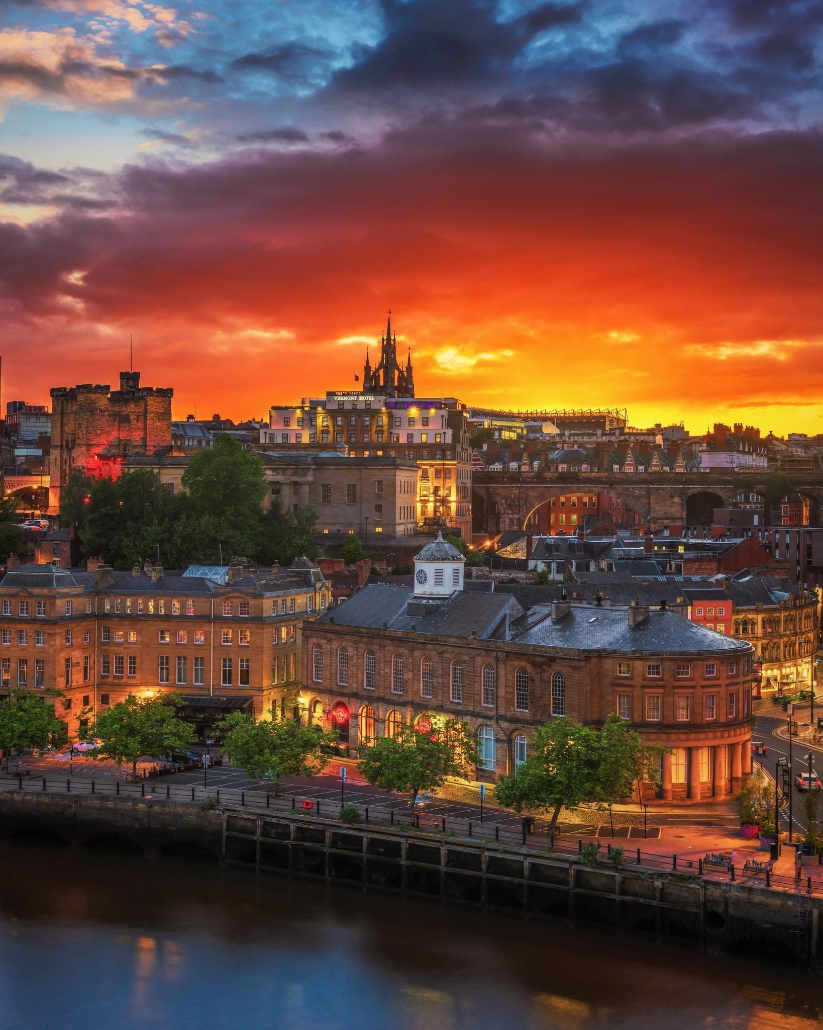 Colourful sunset looking towards Castle Keep.