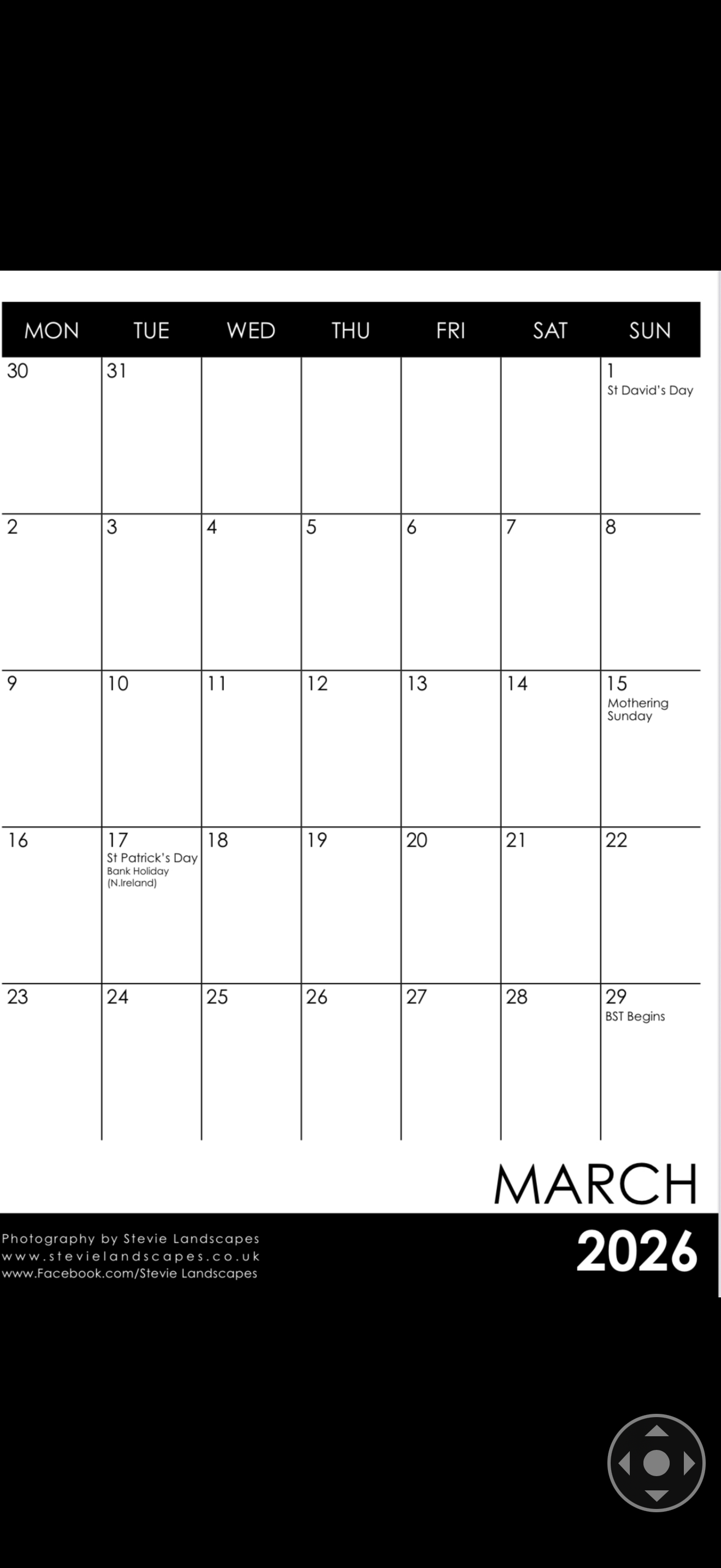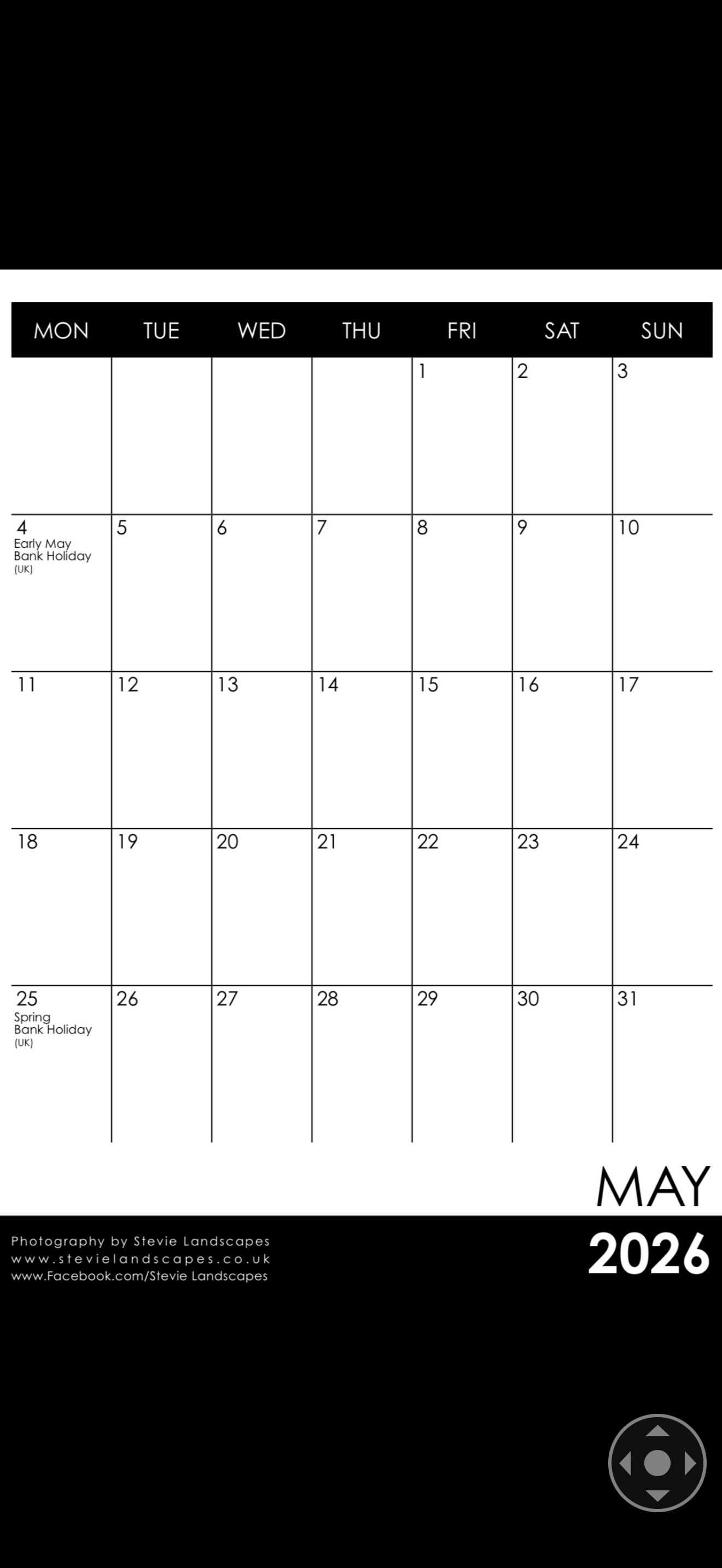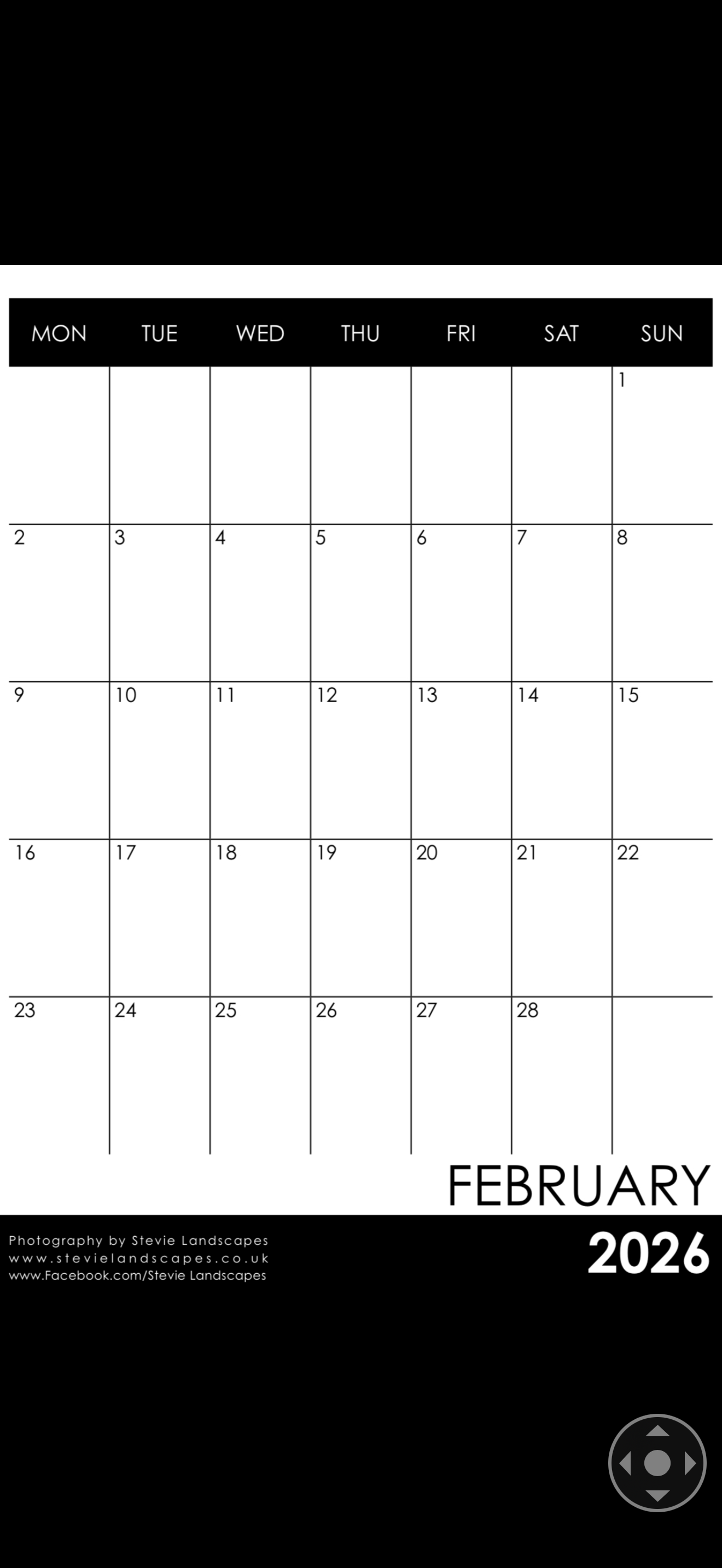 Just like last year’s, my 2026 calendar is double backed with the photo taking up a full page on one side and the monthly dates taking up a full page on the other side.