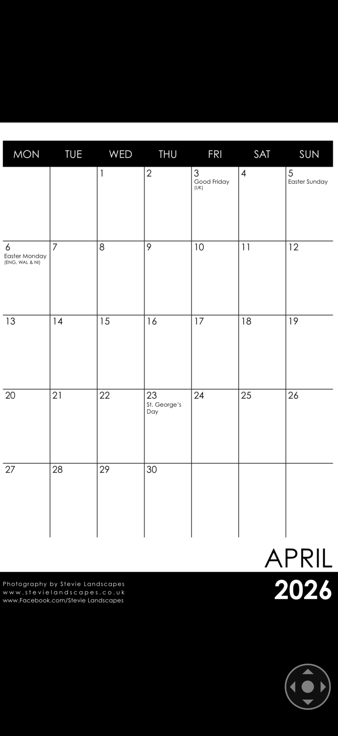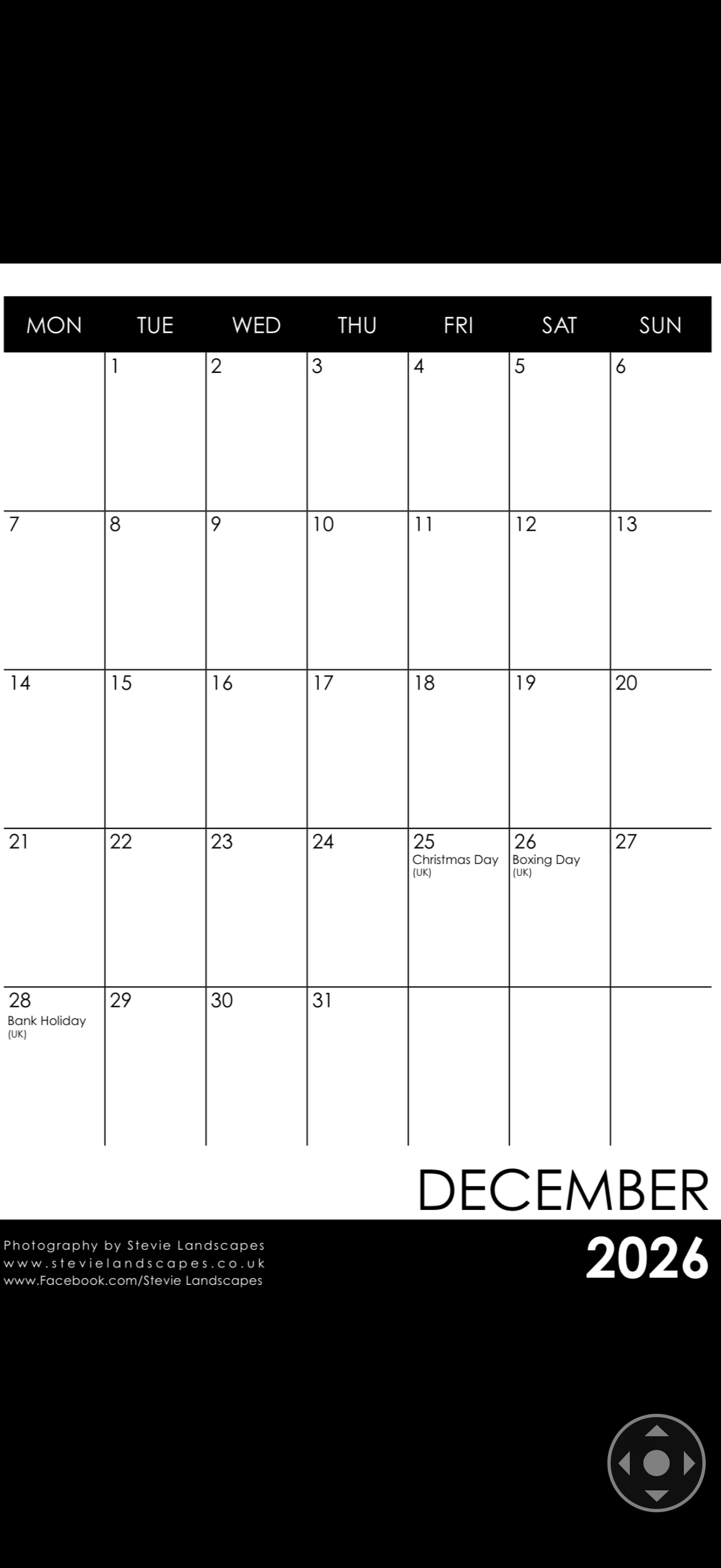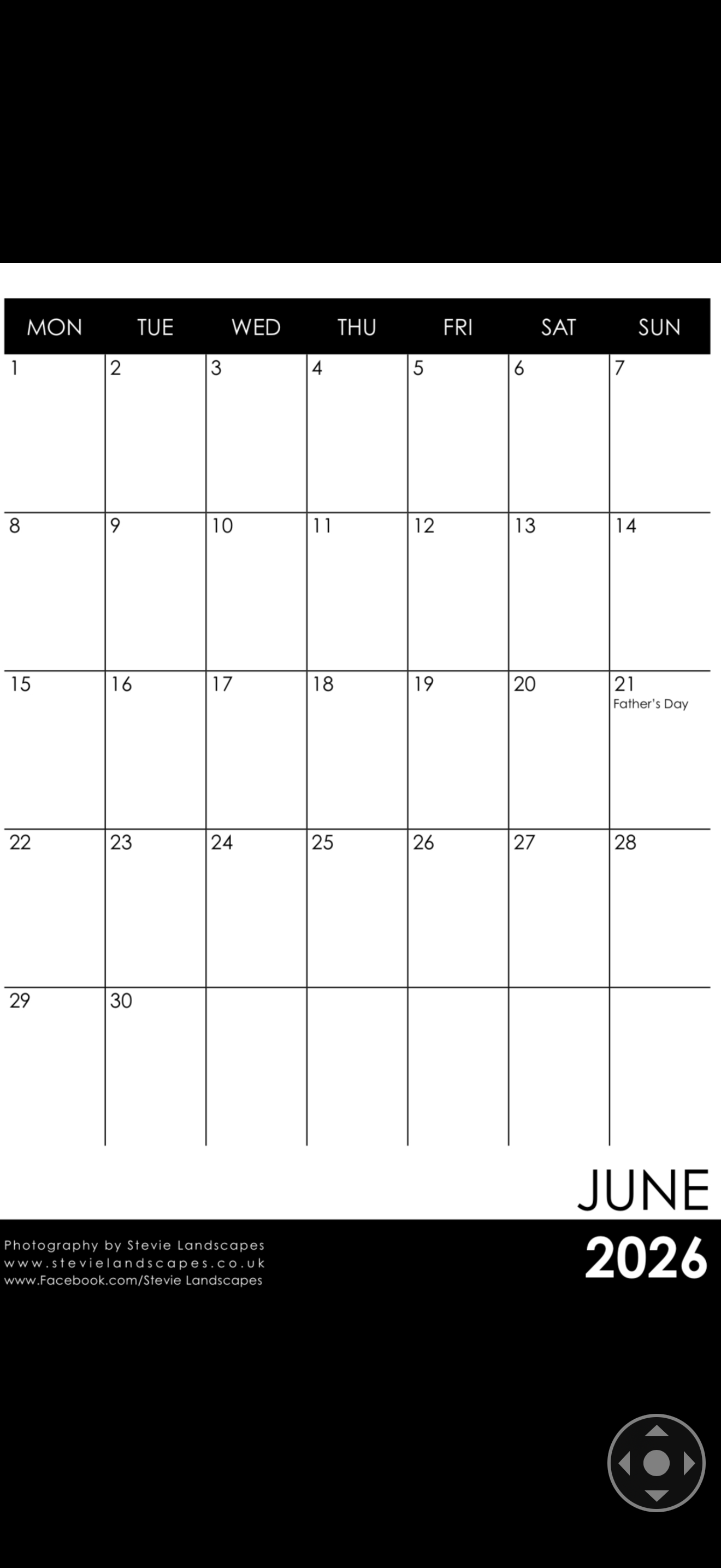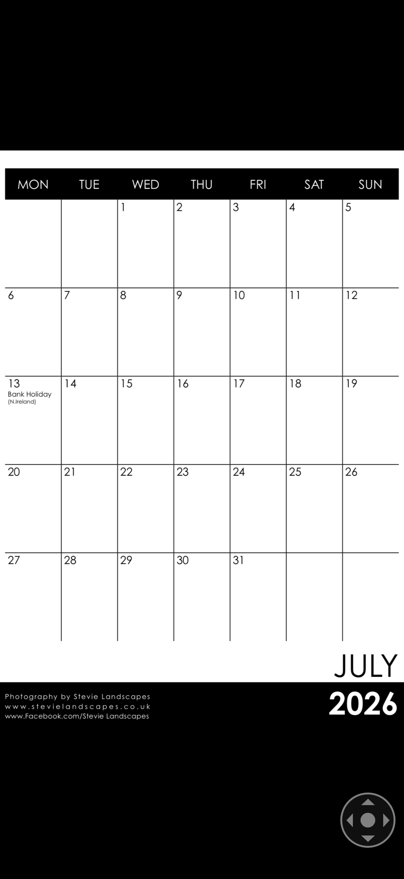 Just like last year’s, my 2026 calendar is double backed with the photo taking up a full page on one side and the monthly dates taking up a full page on the other side.