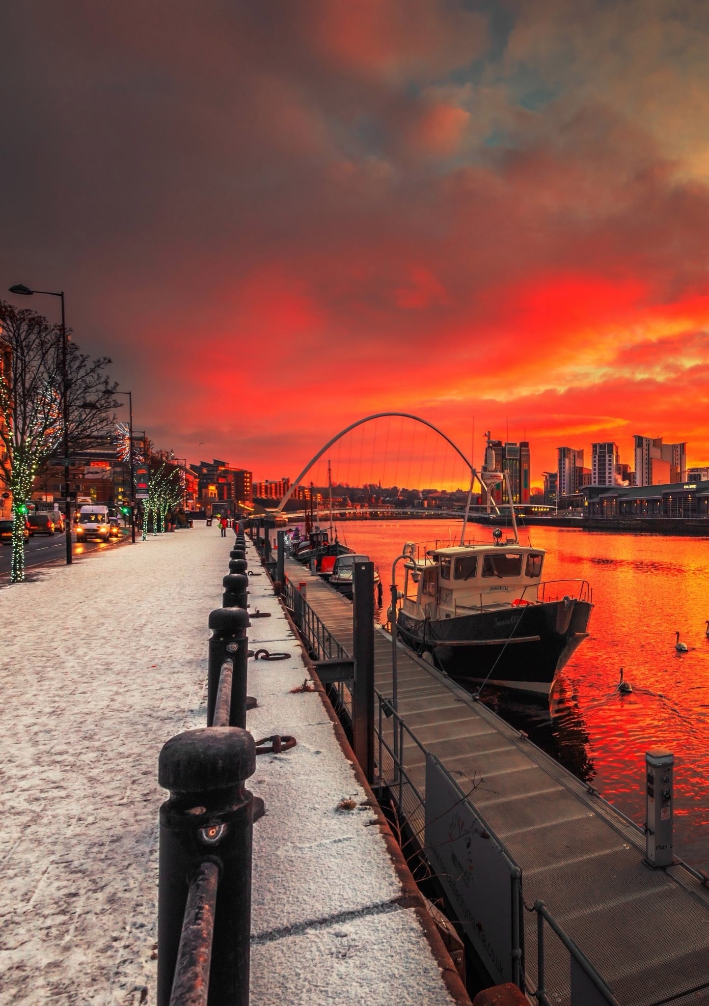 December - A beautiful sunrise on a Snowy Newcastle Quayside.
