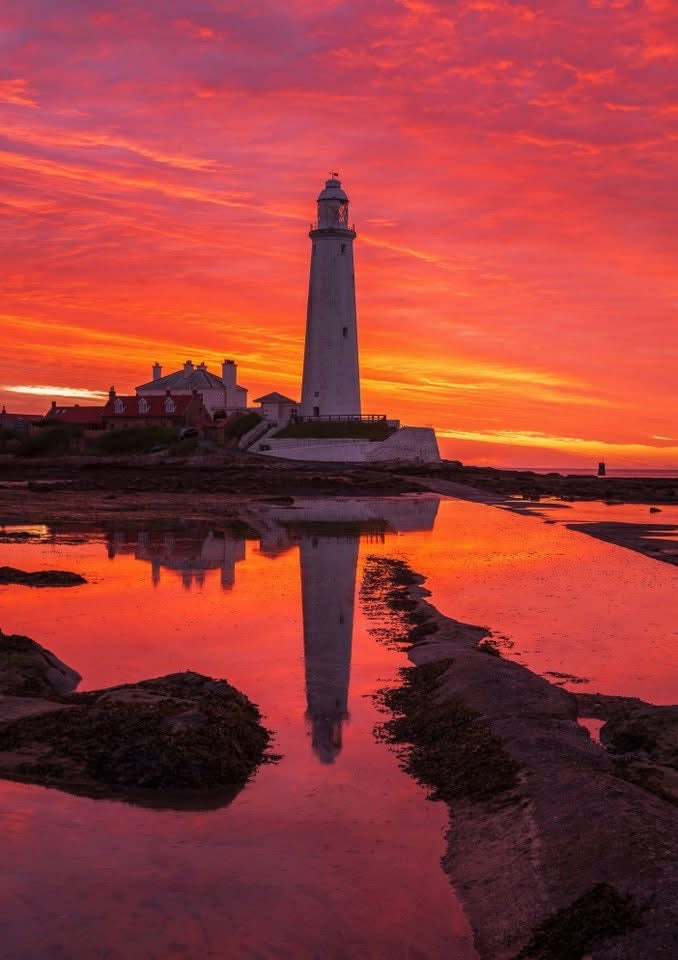 June - Sunrise reflections at St. Mary’s Lighthouse.