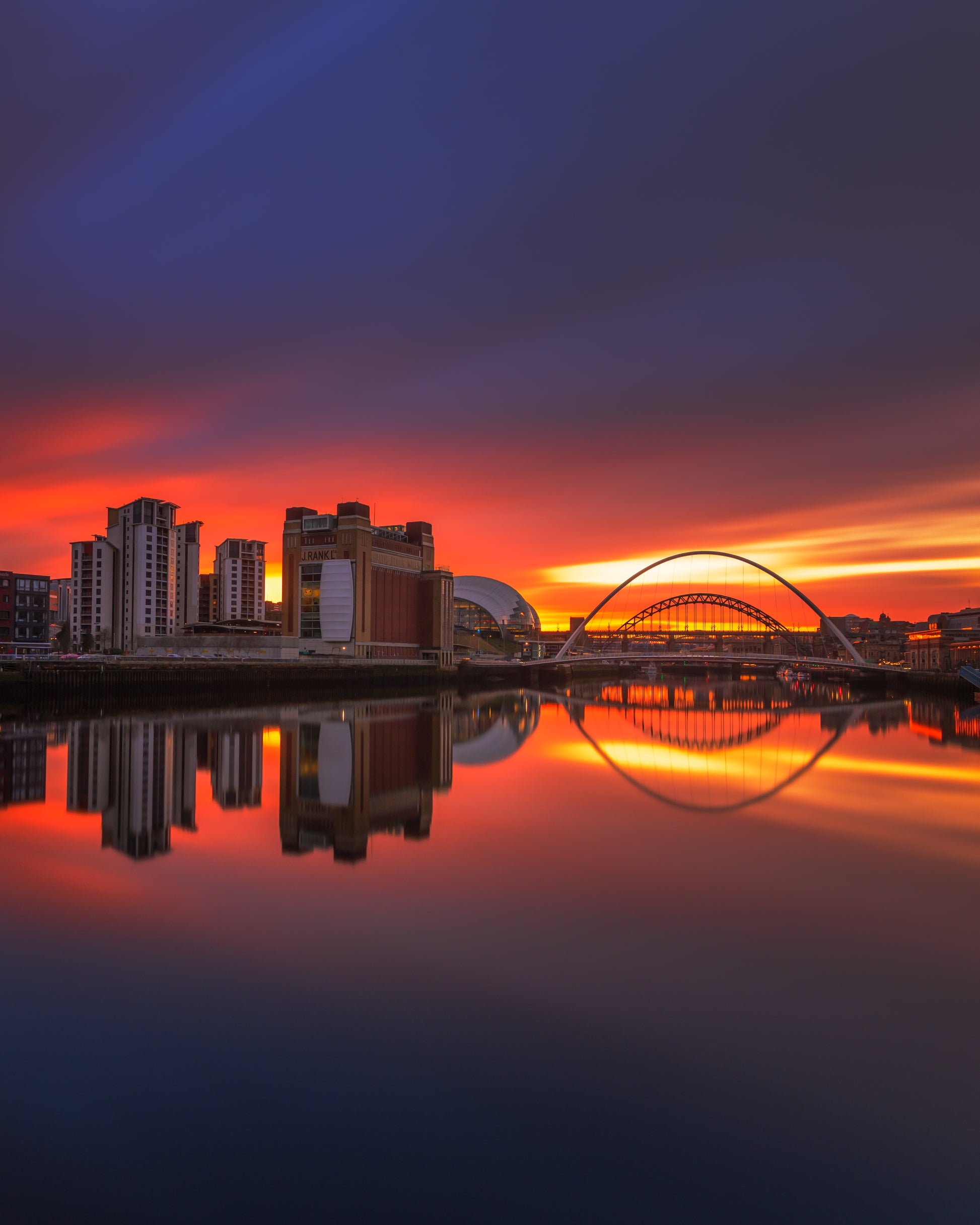 Sunset glow over Newcastle Quayside.